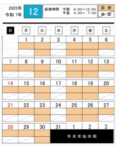 2025年12月診療カレンダー